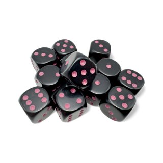 Chessex Opaque Black/pink 16mm d6 Dice Block (12 dice)