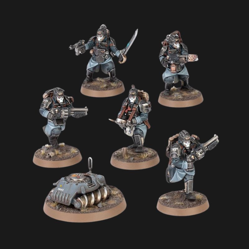 Each squad comprises five highly detailed miniatures equipped with versatile short-range weapons and a devastating guided mine. Their arsenal includes: