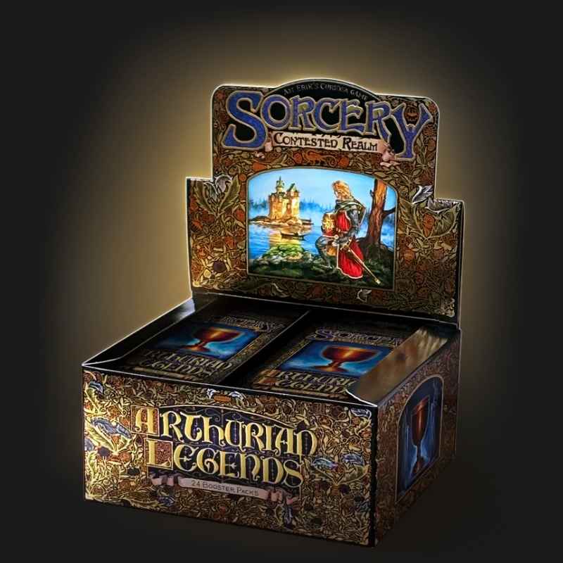 Each pack in this Arthurian Legends Booster set contains meticulously designed cards inspired by the legendary tales of King Arthur, the Knights of the Round Table, and Merlin. From iconic heroes and mythical creatures to legendary quests and enchanted spells, this expansion elevates the immersive experience of Sorcery TCG. Players will enjoy discovering new strategies and mechanics while celebrating one of history's most enduring legends.