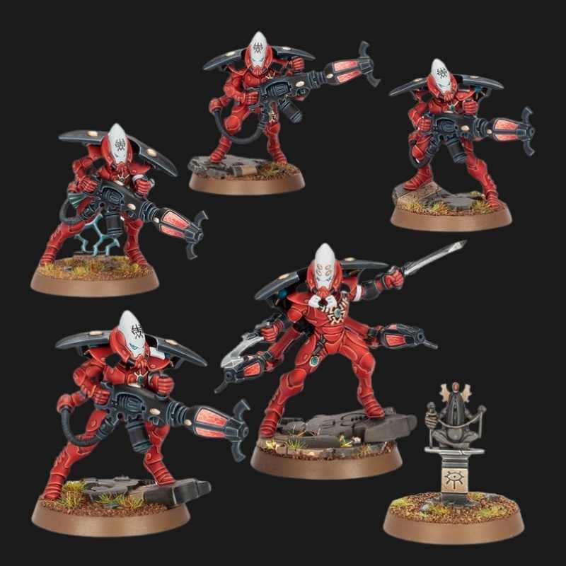 This kit comprises 90 plastic components, 5x Citadel 28.5mm Round Bases, and 1x Citadel 25mm Round Base. This set also includes 1x Aeldari Transfer Sheet containing 378 waterslide transfers to customise your miniatures.