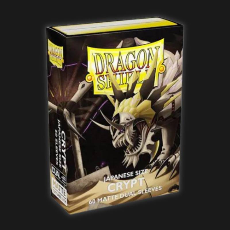 Dragon Shield Small Sleeves - Japanese Dual Matte Crypt (60 Sleeves) Crypt, eerie and macarbe.Japanese size Dragon Shield Matte Dual sleeves. Clear front and a textured matte back. Fully opaque sleeves with a black interior, an elegant backdrop for black...